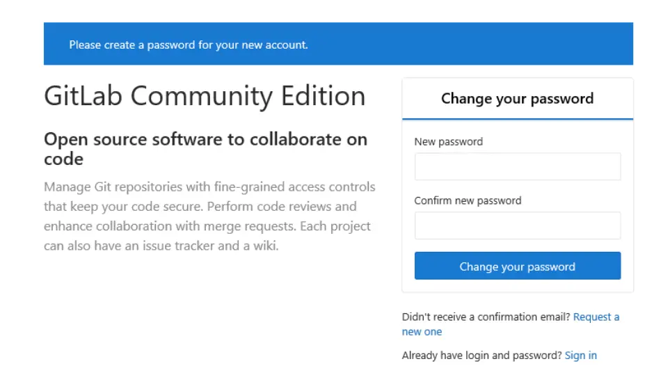 这样就可以通过你的服务器ip:你的端口就可以访问gitlab了,这个是成功画面