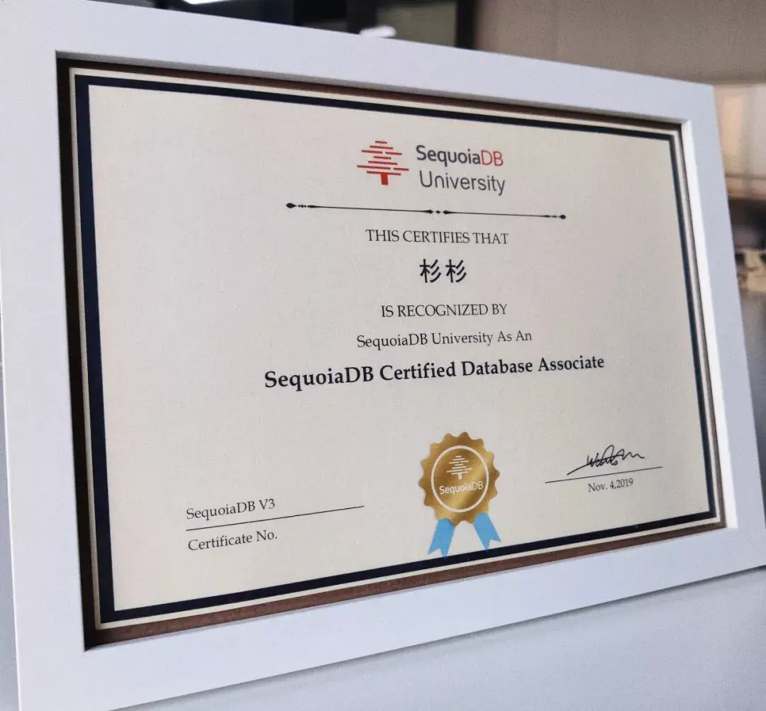 SequoiaDB University还推出了对应技术培训课程的专业认证体系。SequoiaDB University 的专业认证认可开发人员和DBA具有构建和维护 SequoiaDB 分布式数据库所需的知识和技能,并由 SequoiaDB 巨杉数据库作为唯一权威机构对考试通过学员颁发相应的认证证书。