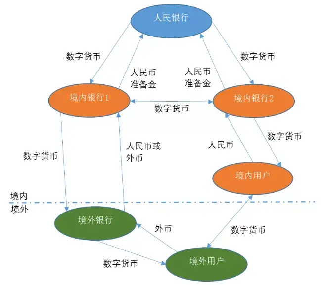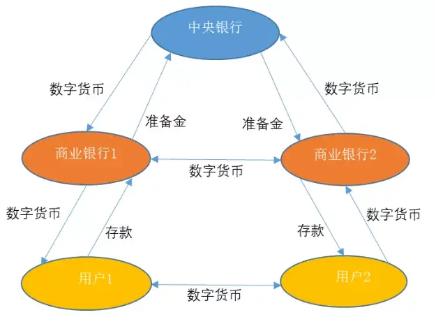 遵循传统的中央银行-商业银行二元模式运行框架。中央银行将数字货币发行至商业银行业务库,商业银行受中央银行委托向公众提供数字货币存取等服务,并与中央银行一起维护数字货币的发行和流通体系的正常运行。