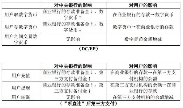 · 尽管DC/EP属于货币工具,“断直连”后第三方支付主要是支付工具,但两者有很多相似之处。如果DC/EP在技术效率和商业拓展上做得足够好,站在用户角度,DC/EP与“断直连”后第三方支付可以带来同样体验。因此,DC/EP与“断直连”后第三方支付在应用有相互替代关系。