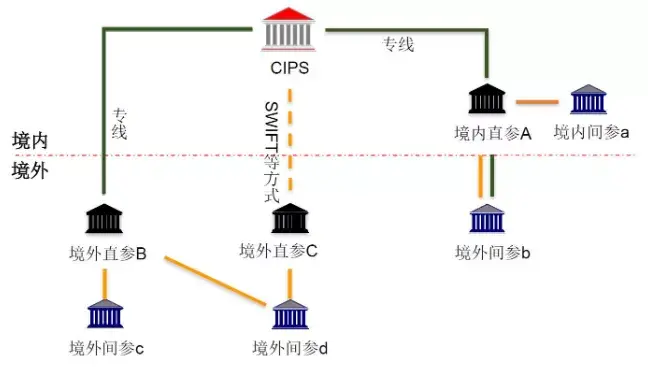 2015年,人民币跨境支付系统(CIPS,Cross-border Interbank Payment System)上线,作为人民币国际化的“高速公路”,为人民币跨境和离岸业务提供跨时区的资金清算结算业务(图8)。CIPS的业务处理主要包括针对客户汇款和头寸调拨的逐笔支付业务,针对批量汇款的批量支付业务,以及针对SSS(Security Settlement System,证券结算系统)付款交割结算和CCP(Central Counterparty,中央对手方)集中清算的金融市场业务等。CIPS可处理人民币跨境贸易、投融资、金融市场业务等的资金结算,有利于支持人民币在全球范围内使用,为境外银行及当地市场提供流动性,防止离岸资金对在岸市场冲击。此外,图8还显示了CIPS与环球同业银行金融电讯协会SWIFT之间的关系。