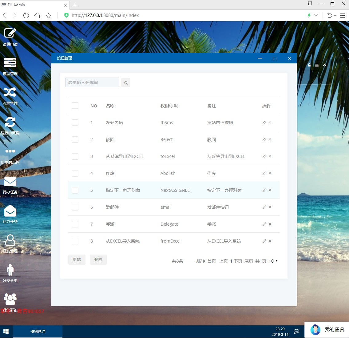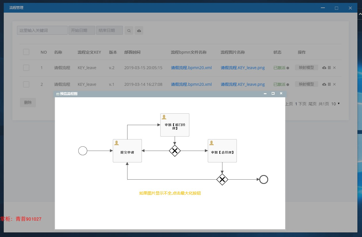 2.流程管理 :导入导出流程资源文件、查看流程图、根据流程实例反射出流程模型、激活挂起