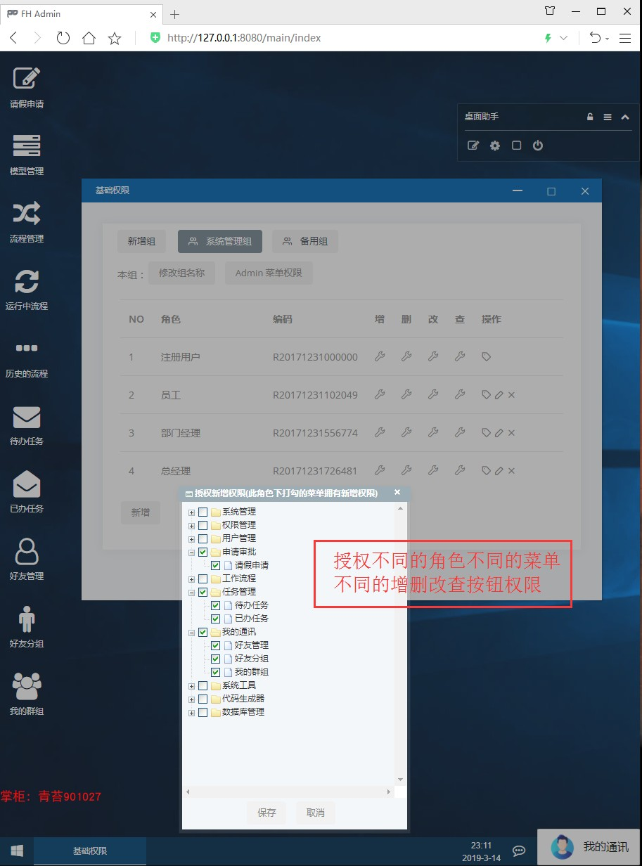 支持多用户分权限管理后台, 权限具体到不同的菜单不同的按钮