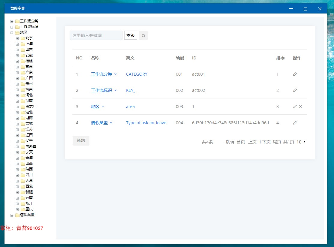. 数据字典:N级别,支持多级别分类。内设编号,排序等5