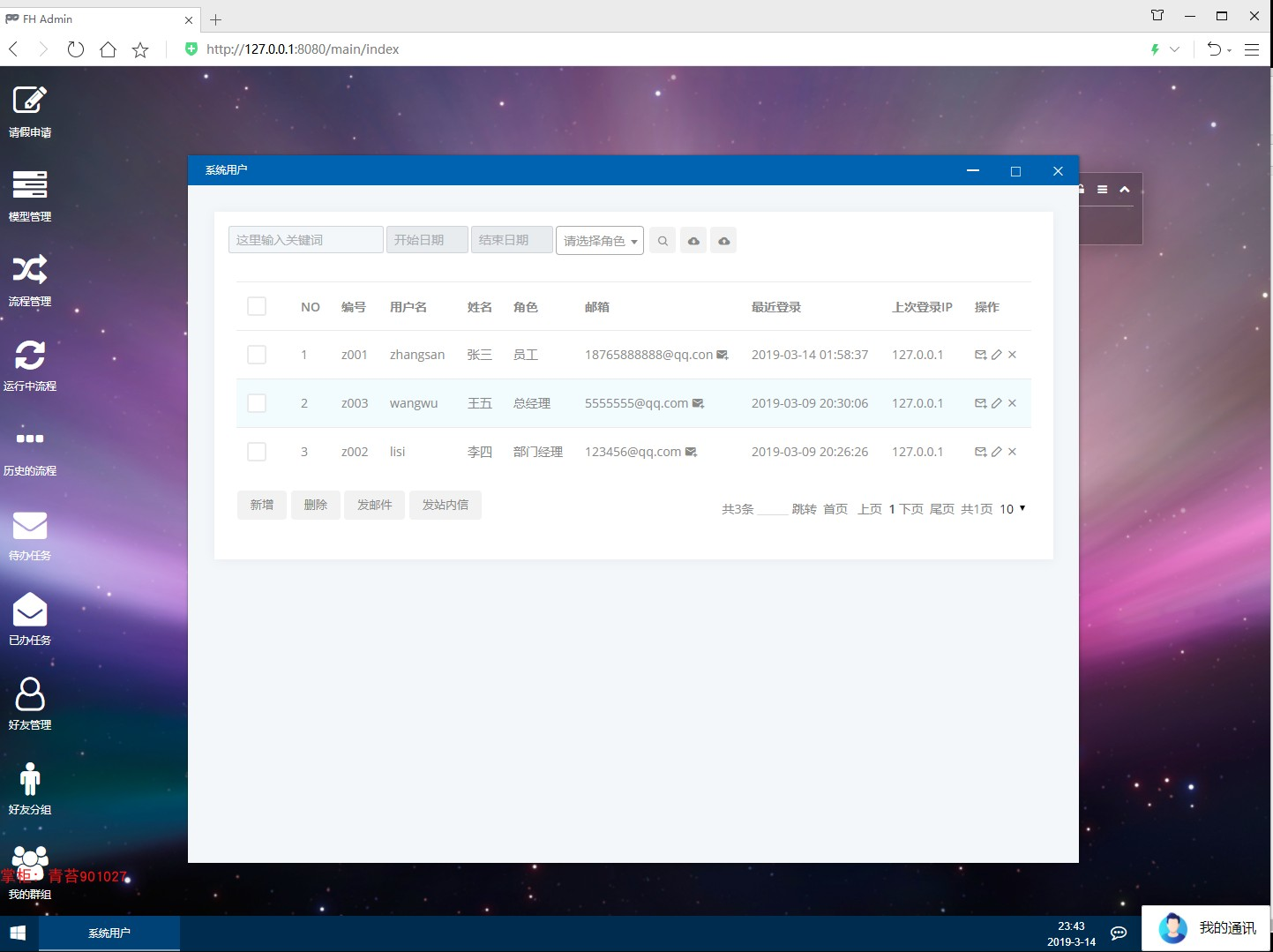 .系统设置:修改系统名称,每页显示条数, 邮件服务配置,站内信配置