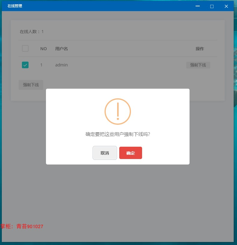 . 在线管理:websocket技术,实时检测在线用户列表,统计在线人数,可强制用户下线