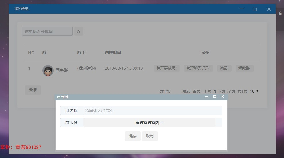 我的群组:创建群组,搜索申请加入别人的群,踢出群成员,管理群聊天记录16