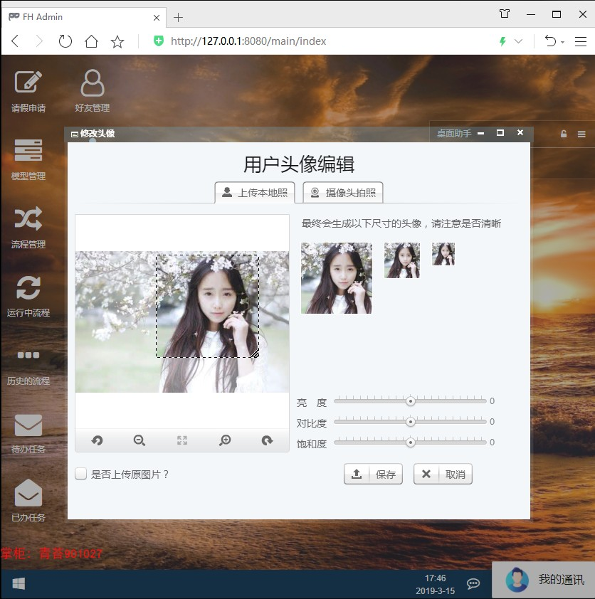 5.调用摄像头拍照 自定义裁剪编辑头像,头像图片色度调节