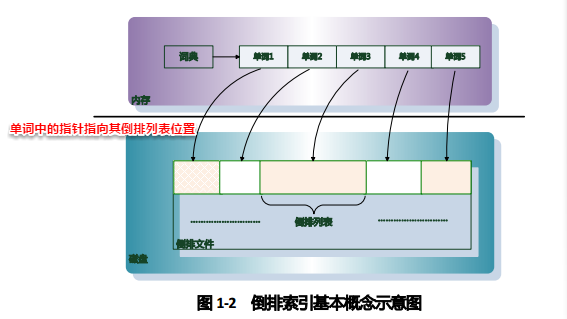 - 临时索引----是在内存中实时建立的倒排索引,其结构和前述的倒排索引是一样的,区别在于词典和倒排列表都在内存中存储。当有新文档进入系统时,实时解析文档并将其追加进这个临时索引结构中。