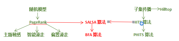 - 绝大部分链接分析算法建立在随机游走模型和子集传播模型基础之上。
