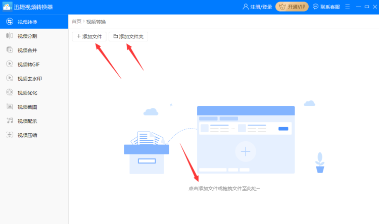 1、首先打开软件并选择“视频转换”功能并把qlv格式的视频添加到软件中,添加的时候可以点击软件左上角的“添加文件”或者“添加文件夹”按钮进行添加,如果不想点击左上角的两个按钮软件也支持直接把需要转换的视频拖拽到软件中。