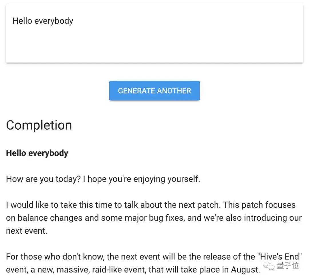 如果你只是想体验一下效果,还有人在网站上集成了GPT-2 15亿参数模型的功能,输入开头,即可一键生成文本。