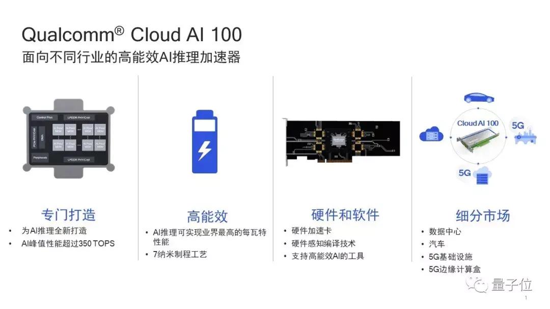 在发布的时候,高通表示,这一芯片能降低终端与数据中心的延迟,提高AI云端效率。与其他商用方案相比,Cloud AI 100每瓦特性能提升了10倍。