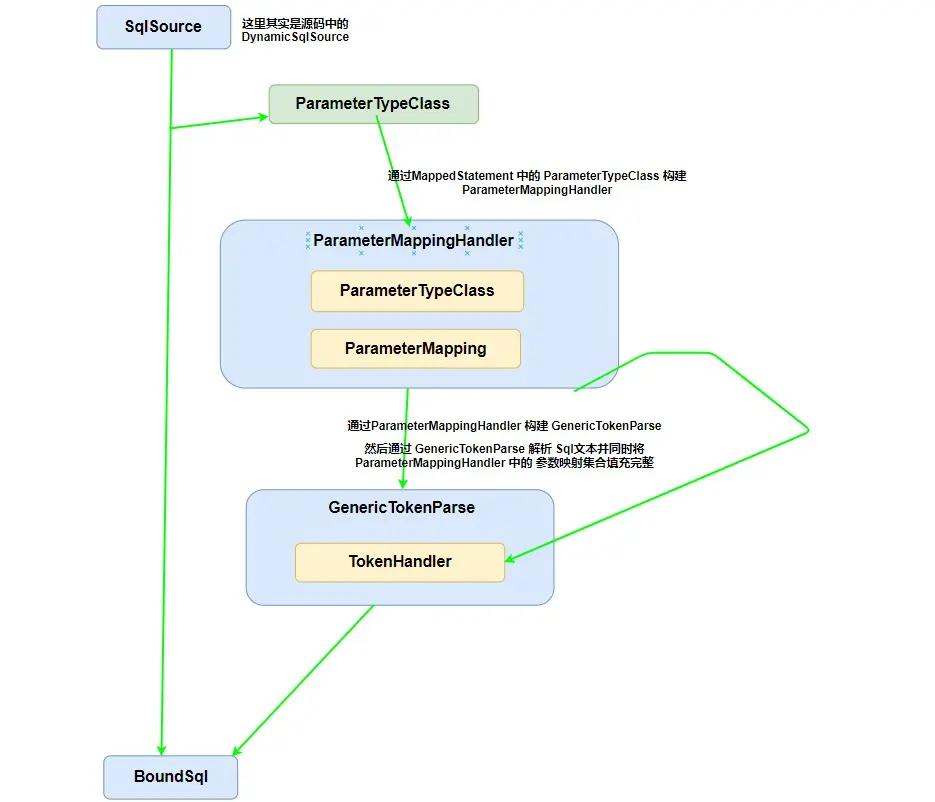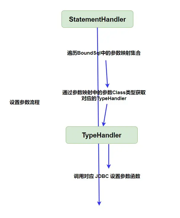 其实你也发现了,第二步到这里并没有完成,这里仅仅是完成了前面一半(将配置的 parameterType 封装到集合中),到现在为止还是没有调用 JDBC 的设置参数代码。