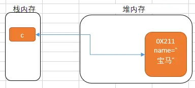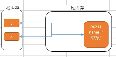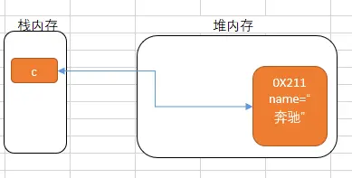 Car c=new Car("奔驰");这个时候c指向了堆内存中的对象。