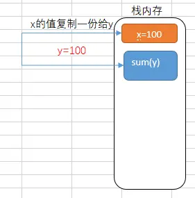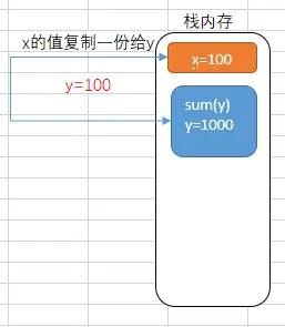 sum(x);这时候x把的值复制了一份给了sum(int y)。