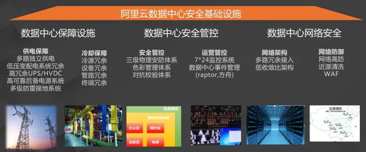 在飞天大数据中台中,数据中心物理与网络层的安全保障, 由阿里云数据中心安全基础设施提供。我们重点介绍三个维度的安全措施: