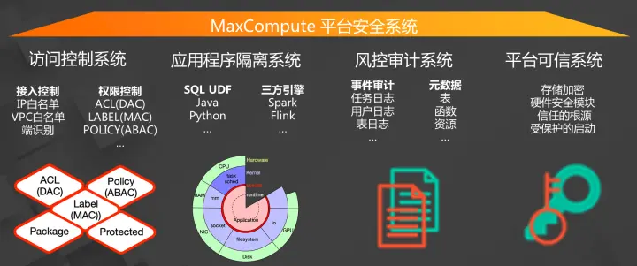 应用程序隔离子系统,该子系统提供独立的隔离环境用于执行数据处理Application. MaxCompute 可以支持 Java和Python语言编写的UDF, 还能够支持执行三方计算引擎,这些都为 MaxCompute的客户提供了更加多元化的数据处理能力。