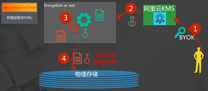 存储加密BYOK,赋予企业需要销毁云上数据的能力. 企业只需要在阿里云KMS中销毁根秘钥, 即可实现销毁云上所有基于此根秘钥加密的数据。
