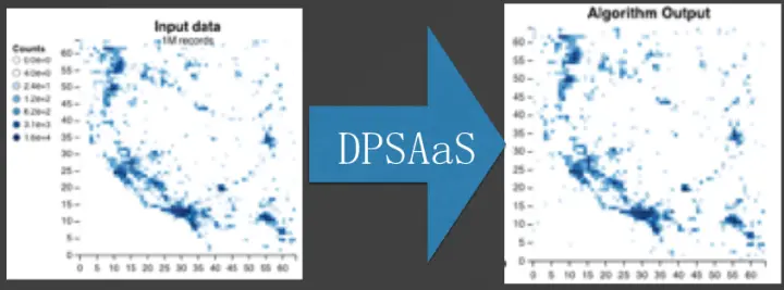 差分隐私是目前在数学上可以证明隐私保护手段。将包含敏感信息的数据经过差分隐私脱敏处理后, 脱敏数据与原始数据之间呈现出数学上可描述的概率分布规律,如上图所示。红线是包含原始数据,黑线是经过脱敏的数据。这意味着, 在某些统计场景中, 可以用脱敏后的数据替代原始数据而不影响统计结果。
