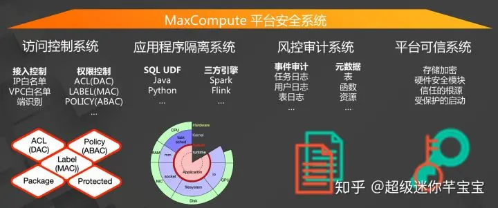 应用程序隔离子系统,该子系统提供独立的隔离环境用于执行数据处理Application. MaxCompute 可以支持 Java和Python语言编写的UDF, 还能够支持执行三方计算引擎,这些都为 MaxCompute的客户提供了更加多元化的数据处理能力。