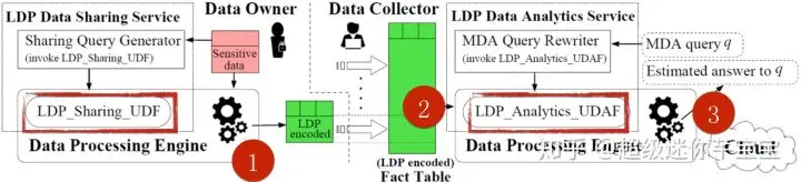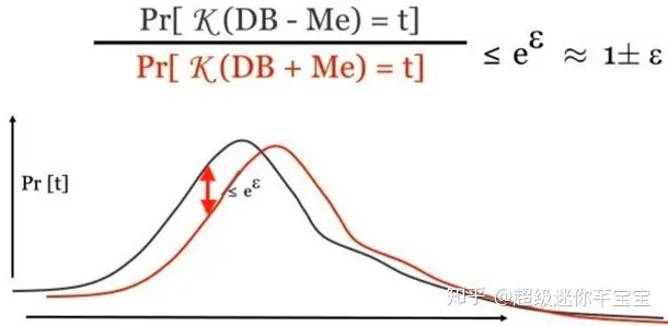差分隐私是目前在数学上可以证明隐私保护手段。将包含敏感信息的数据经过差分隐私脱敏处理后, 脱敏数据与原始数据之间呈现出数学上可描述的概率分布规律,如上图所示。红线是包含原始数据,黑线是经过脱敏的数据。这意味着, 在某些统计场景中, 可以用脱敏后的数据替代原始数据而不影响统计结果。