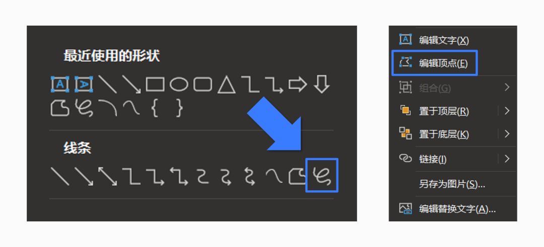 你可以用PPT自带的【自由曲线】画出曲线,右击曲线选择【编辑顶点】,就可以精确调整曲线的弧度了: