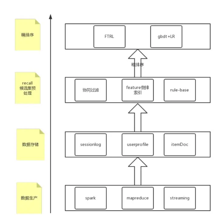 从框架的角度看,推荐系统基本可以分为数据层、召回层、排序层。