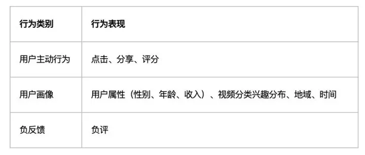 · 负例:正例一般是用户产生点击、下载、分享等转换行为的样本,但是用户没有转换行为的样本是否就一定是负例呢?其实不然,很多展现其实用户根本没有看到,所以把这样样本视为负例是不合理的,也会影响模型的效果。比较常用的方法是skip-above,即用户点击的item位置以上的展现才可能视作负例。当然,上面的负例都是隐式的负反馈数据,除此之外,我们还有用户主动删除的显示负反馈数据,这些数据是高质量的负例。