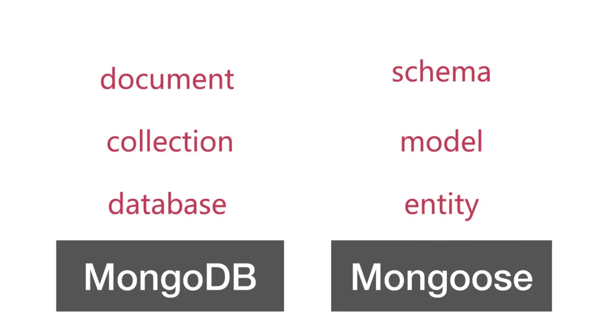 2、mongoDB是从设计角度:document>collection>database,类似 mysql 中的 row>table>database。mongoose是从使用代码角度的:schema、model、entity。