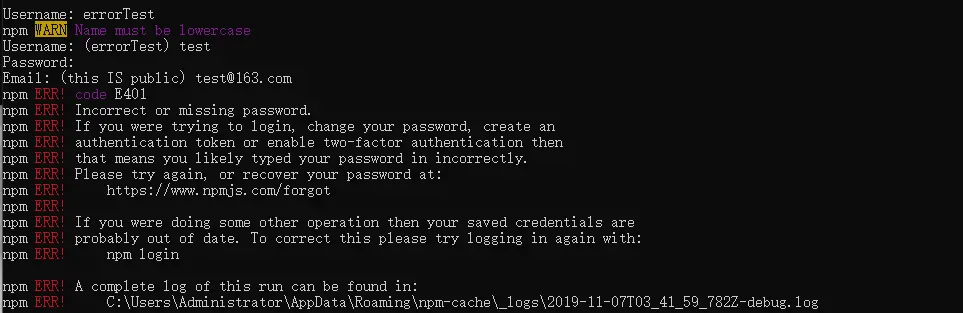 npm publish failed put 500 unexpected status code 401