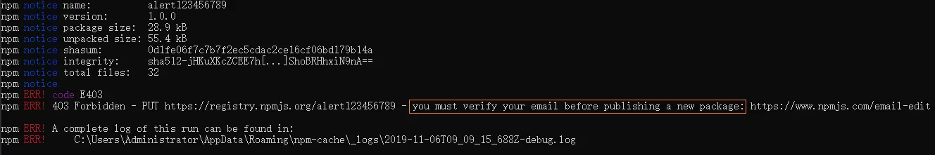 在 npm官网 注册账号,并 验证邮箱,没有验证是不能发布代码的