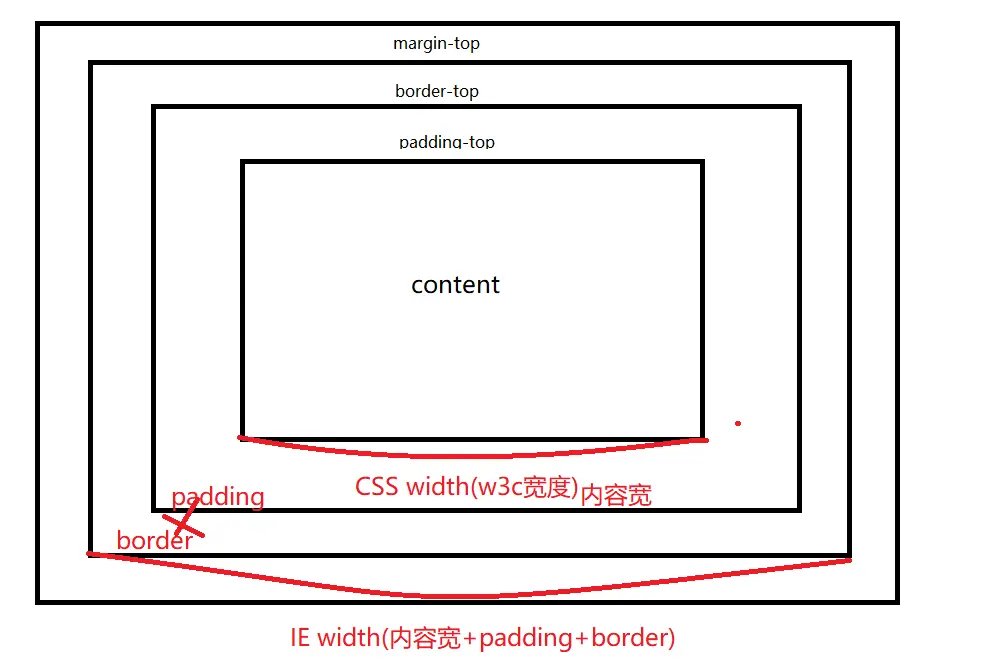总结:在w3c中定义了一个元素的宽度和高度,指的是元素 内容的宽度和高度,而在IE中,宽度和高度还包含了padding和border的值