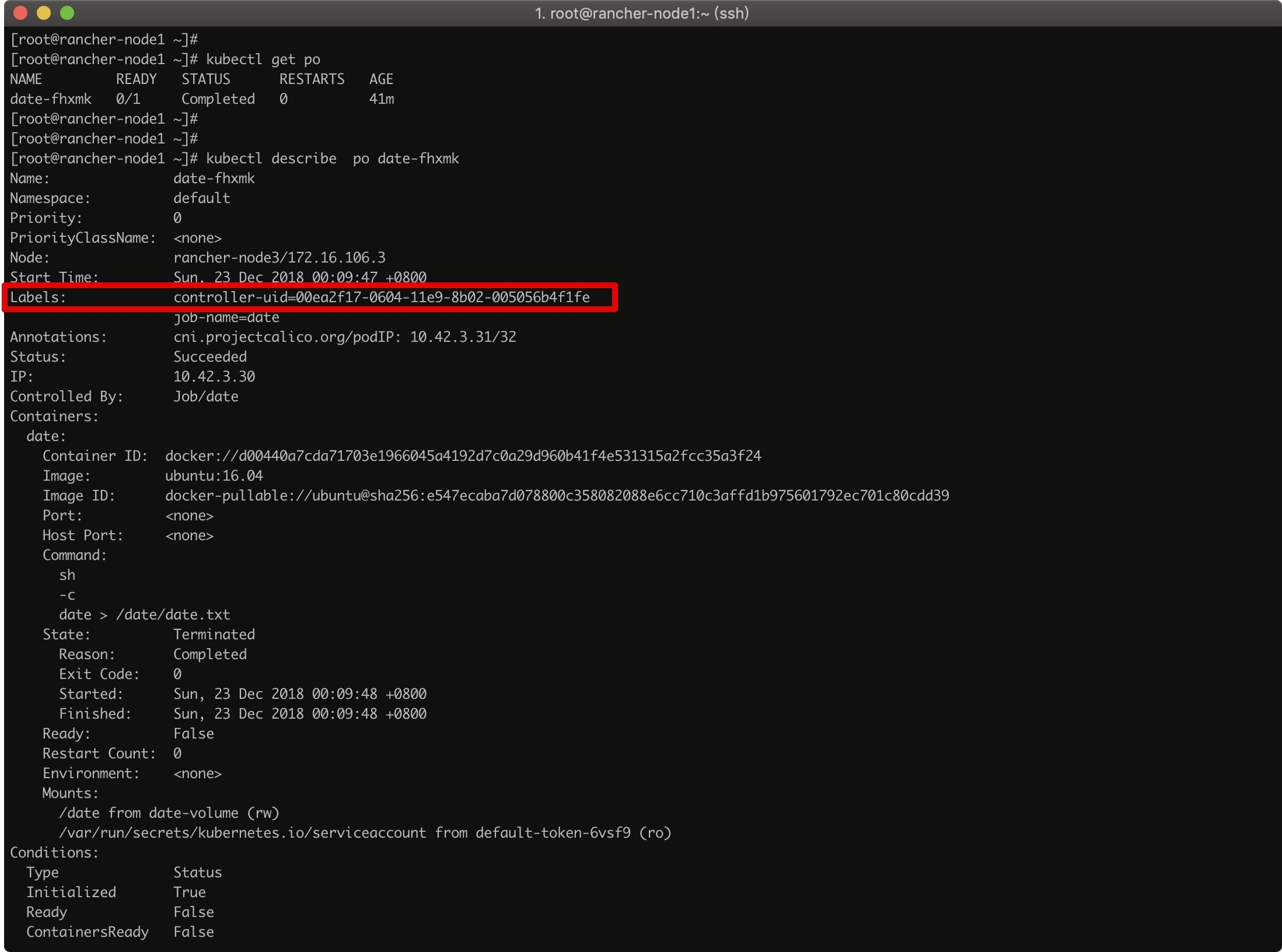 pod 在执行完毕后,状态会变成 Completed,我们可以去 pod 被调度的 node 上查看我们挂载进去的 date.txt 文件: