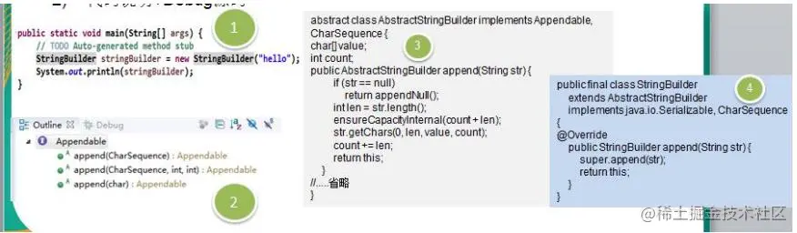 - AbstractStringBuilder实现了Appendable接口方法,这里的AbstractStringBuilder已经是建造者,只是不能实例化。