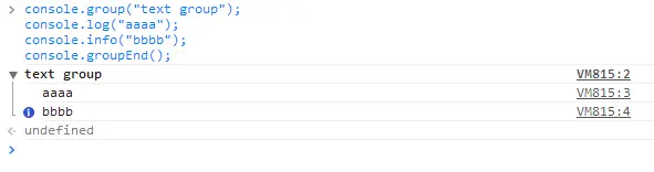 用于显示一组的控制台输出,要搭配console.groupEnd来使用。