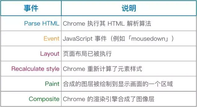 Scripting脚本Rendering渲染 ---->重排(样式计算和布局等)Painting绘制 ---->重绘(颜色等)Loading加载ldle闲置