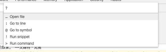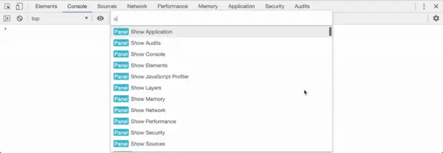 在Devtools打开的情况下,键入cmd + shift + p将其激活,然后开始在栏中键入要查找的命令或输入"?"号以查看所有可用命令。