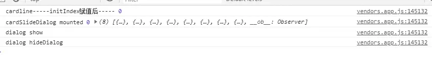 一开始觉得有可能是dialog显示了被遮挡住了,所以看起来没有显示。然后修改z-index属性,发现还是一样的效果。 看来问题没有这么简单,还是仔细的分析一下... 最外层是个cube-slide,cube-slide-item 里面的div 触发点击弹出 自定义的dialog。dialog本身显示是没有问题的,可能是受到了其它组件的影响。然后我增加了一些打印,dialog的显示和隐藏的函数进行打印。