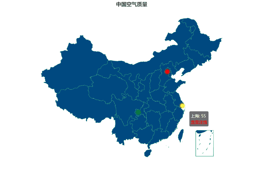 此时数据显示正确,点击跳转功能也实现了,还差根据污染程度不同显示不同颜色的标注点,所以要再回到series对数据的配置项下。