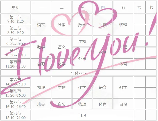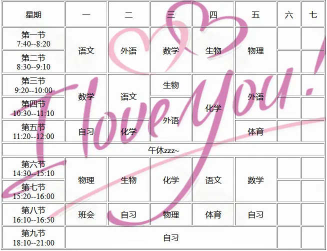学习也有两个月了,我接触了PHP,JS,CSS。刚好有个朋友问我是否可以帮他做个课表,我就答应了并做成了如下样式。
