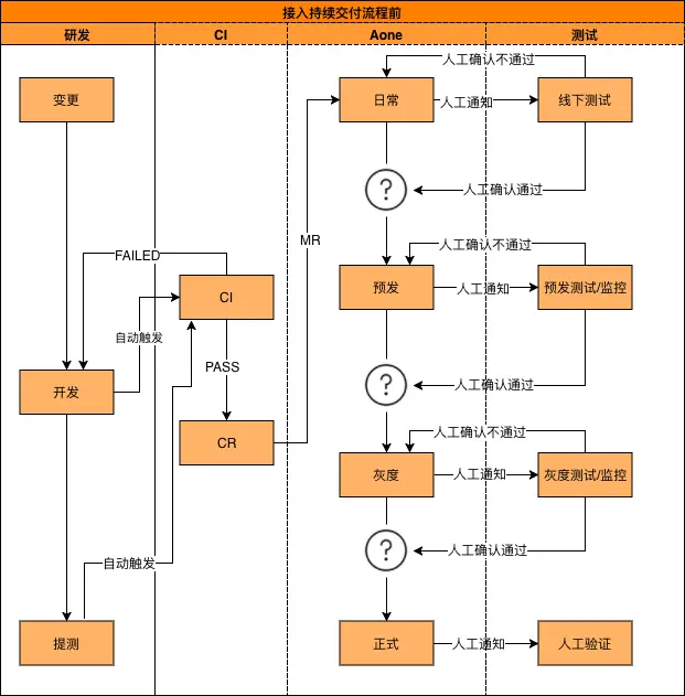 依托于集团的发布流程,在持续交付体系中建立与集团发布流程对应的标准化流程流转机制