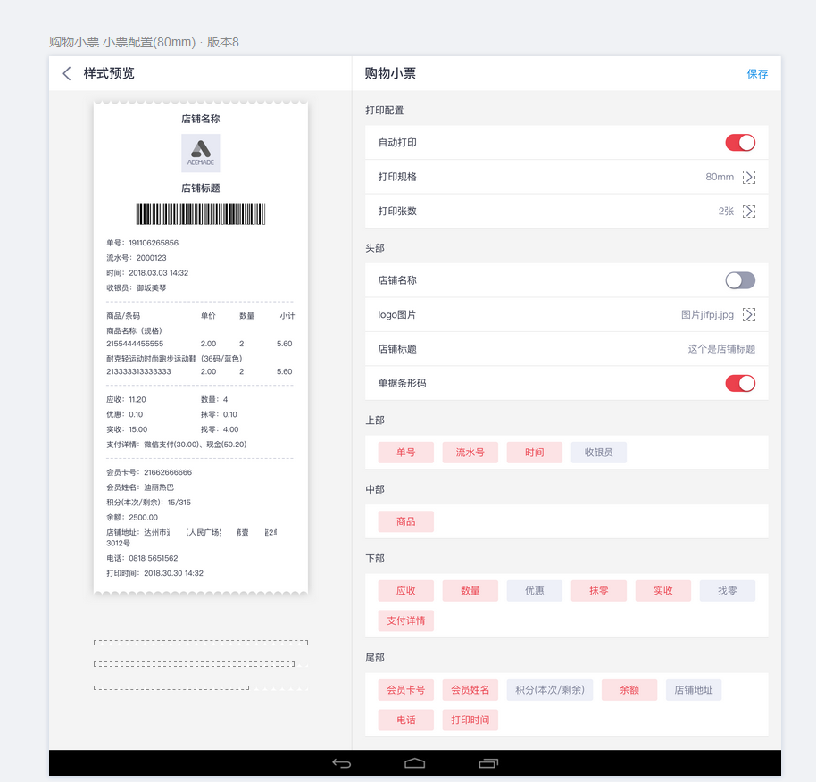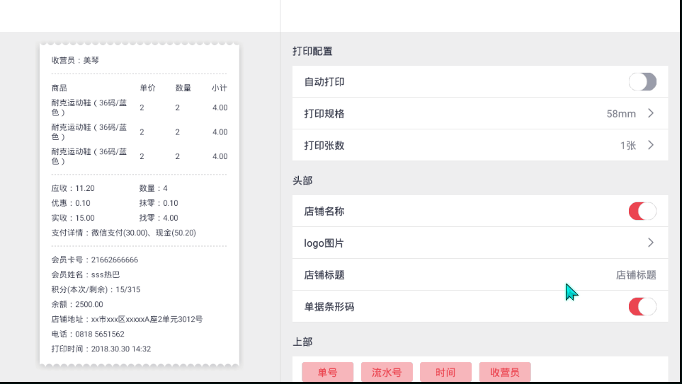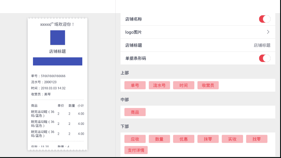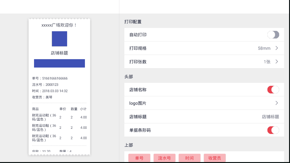 需求分析(注意只是小票展示和设置,不包括小票的打印)