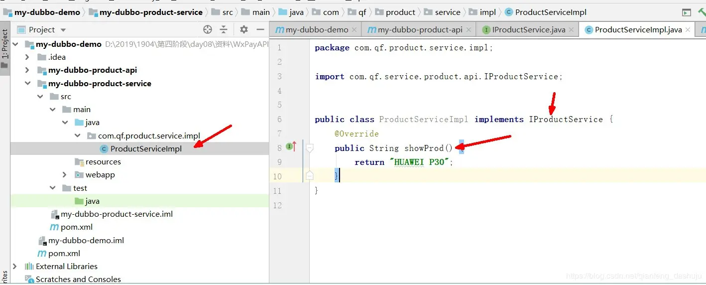 编写实现类,实现接口,并重写方法,注意要把api的项目依赖进来。