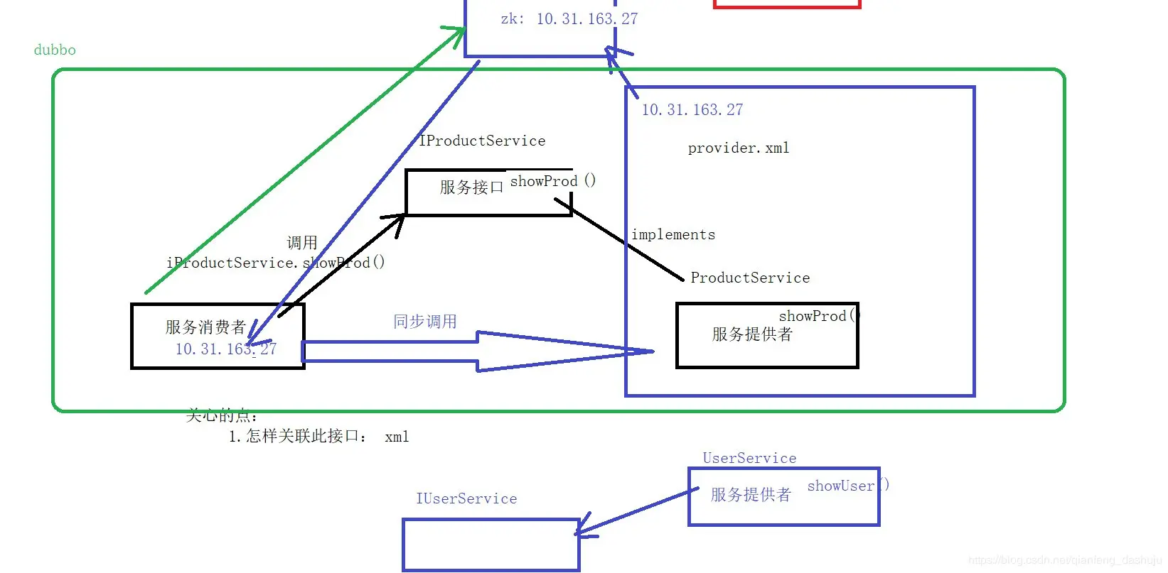 <? xml version="1.0" encoding="UTF-8"?> <beans xmlns="http://www.springframework.org/schema/beans" xmlns:xsi="http://www.w3.org/2001/XMLSchema-instance" xmlns:dubbo="http://code.alibabatech.com/schema/dubbo" xsi:schemaLocation="http://www.springframework.org/schema/beans http://www.springframework.org/schema/beans/spring-beans.xsd http://code.alibabatech.com/schema/dubbo http://code.alibabatech.com/schema/dubbo/dubbo.xsd"> <!-- 配置消费者应用的名字--> <dubbo:application name="product-consumer"/><!-- 配置注册中心的地址--> <dubbo:registry address="zookeeper://10.31.163.100:2181"/><!-- 配置要使用的接口所在的路径--> <dubbo:reference interface="com.qf.service.product.api.IProductService" id="productService"/></beans> |