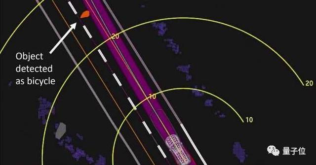 雷达(Radar)第一次检测到前方物体,将其识别为汽车,并估测了“它”的速度。