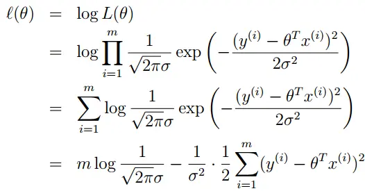 最小二乘法的本质就是找到一个估计值,使实际值与估计值的距离最小。而为了度量最小距离,只要使实际值与估计值之差的平方最小就好,下面就是最小二乘的表达式损失函数cost function,我们的目标就是求θ。