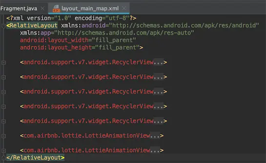 接着全局搜索文件:MapFragment,然后文件内搜:R.layout.,找到布局文件名: