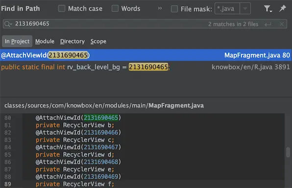 2131690465是控件ID,全局搜下,在R文件中可以找到对应值