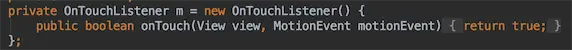 onTouch()返回true,使得Recyclerview的onTouchEvent方法不被调用(从而屏蔽用户滑动与点击)。